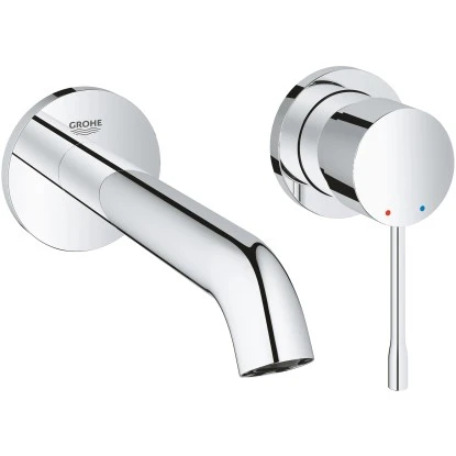 Die 2-Loch-Waschbeckenarmatur Essence, zeichnet sich durch schlichte Eleganz aus. Durch 2-Loch-Montage, direkt an der Wand, ist die Waschbeckenarmatur wegen seiner zylindrischen Form und der glänzenden Grohe StarLight® Chromoberfläche, ein absoluter Hingucker. Für maximalen Komfort, ob beim Haare waschen oder beim Befüllen von Gefäßen, sorgt der separate Auslauf mit einer Länge von 183 mm.