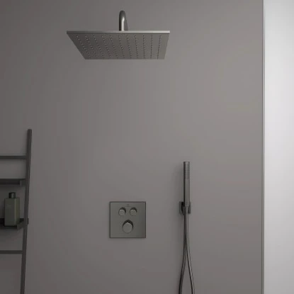 Idealrain ist ein vollständiges Brauseprogramm mit allen Komponenten zur Ausstattung eines schönen und komfortablen Duschbereichs. Dazu zählen zum Beispiel Handbrausen mit Navigo-Umschaltung und formschöne Kopfbrausen.
