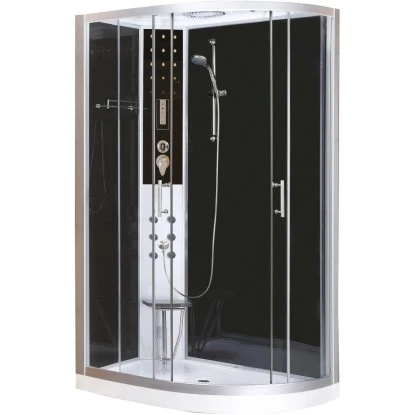 Die Sanotechnik Komplettduschkabine Vario mit Türanschlag links überzeugt durch das moderne Design in Kombination mit der hohen Funktionalität. Durch das einzigartige Quick-Line System entsteht durch ein spezielles passgenaues Aluminiumprofil eine stabile und wasserdichte Rahmenkonstruktion. Nicht nur das moderne Design sondern auch die vielfältigen Funktionen wie Massagedüsen, Handbrause, Beleuchtung, Bedienelement mit integriertem Radio, aufklappbarer Sitz und Kopfbrause ermöglichen Ihnen ein ganz besonderes Duscherlebnis.